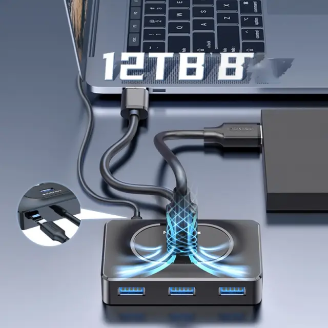 Visoka hitrost prenosa podatkov: S tem Type-C na 4-portni USB 3.0 hubom lahko uživate v hitrem prenosu podatkov do 5 Gbps. To pomeni, da lahko prenašate velike datoteke, kot so videoposnetki visoke ločljivosti in fotografije, v nekaj sekundah. Ne glede na to, ali delate od doma, v pisarni ali na poti, vam ta hub omogoča, da ostanete produktivni in učinkoviti.