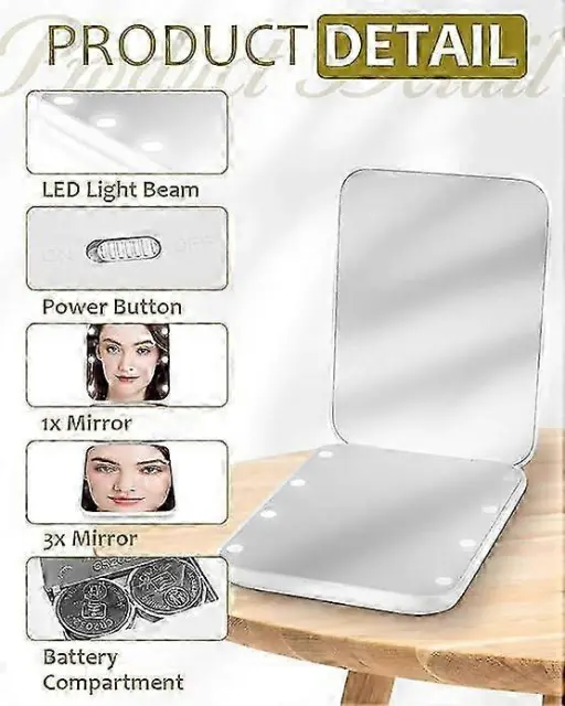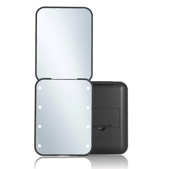 Kompaktno ogledalo, Prenosno ogledalo za ličenje 23 x 18 x 3,8 cm z 8 LED lučkami, črno
