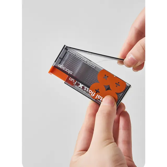 Higienska oblika s pojavnim mehanizmom: To inovativno ohišje za zobno nitko ima priročen pojavni mehanizem. Enostaven pritisk razkrije svežo nitko, preostala nitka pa ostane čista in zaščitena pred prahom, umazanijo in drugimi onesnaževalci. To zagotavlja higiensko izkušnjo nitkanja vsakič, ne glede na to, ali ste doma, v službi ali na potovanju. Uporaba z eno roko je izjemno enostavna.