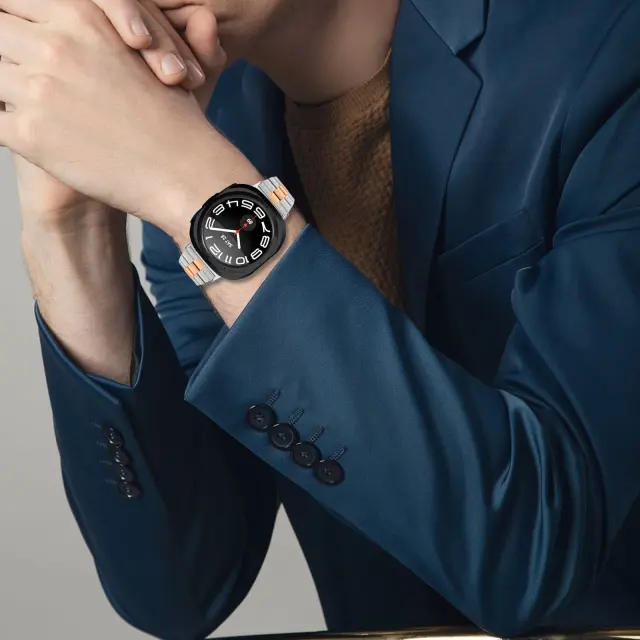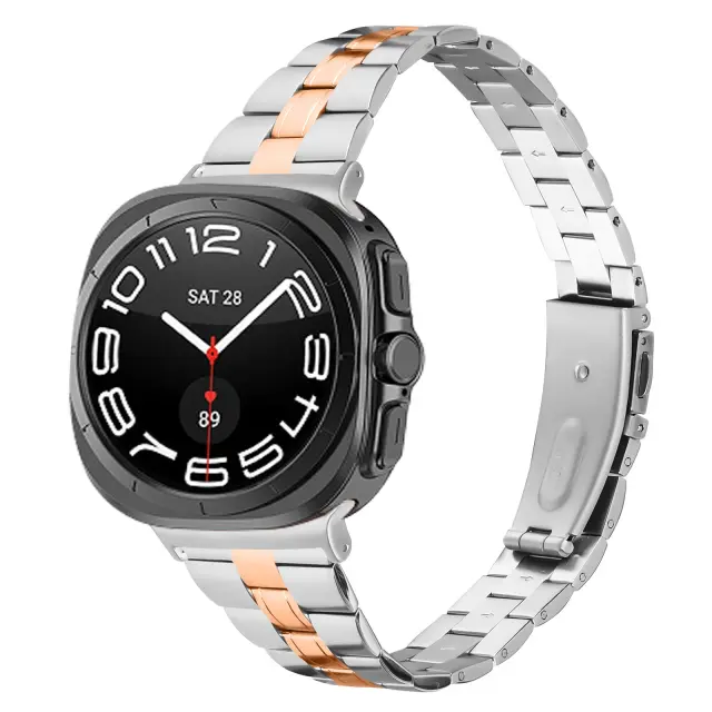 Kompatibilen z Samsung Galaxy Watch8 Trak iz nerjavečega jekla s trojnimi povezavami PinkGold