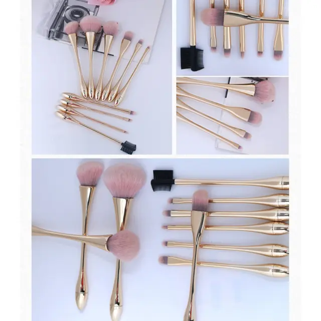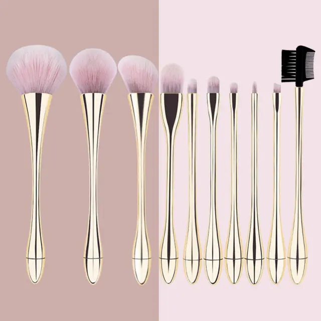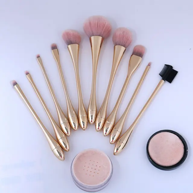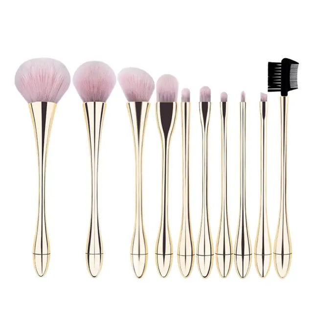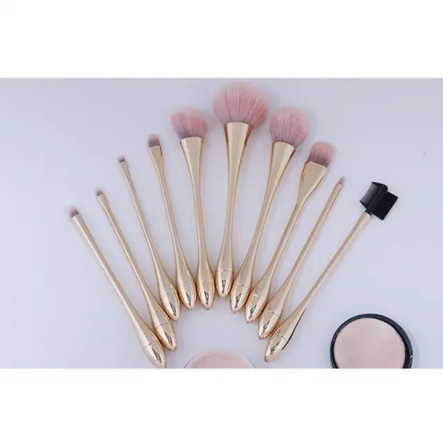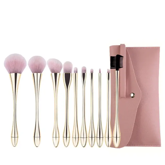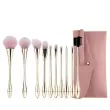 Komplet 10 čopičev za ličenje v šampanjsko zlati in roza barvi z roza torbico