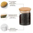 Stekleni kozarci so izdelani izključno iz visokokakovostnega in trdnega borosilikatnega stekla, ki je odporno na temperaturo in varno za živila. Pokrovi so izdelani iz trpežnega bambusa in imajo silikonsko tesnilo, ki omogoča nepredušno zaprtje kozarcev.