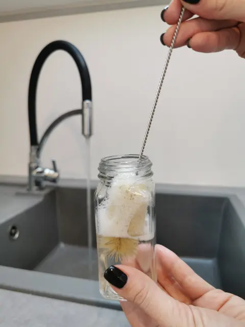 Poleg tega boste prejeli tudi praktično krtačko za čiščenje, zložljiv silikonski lijak in 24 pokrovčkov za stresanje (2 različni vrsti).