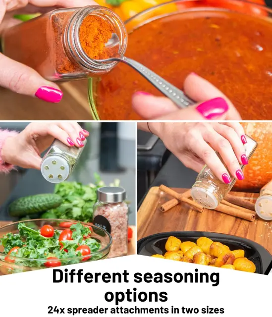 Te kozarčke lahko uporabite za veliko več kot le shranjevanje najljubših začimb. Primerni so tudi za sestavine za peko, kot so čokoladni posipi, kot mini kozarci za marmelado ali za majhne degustacijske porcije.