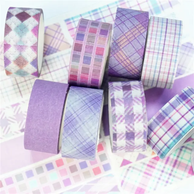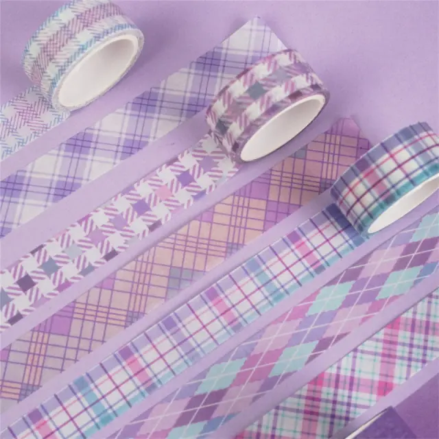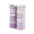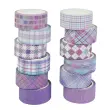 Komplet 12 trakov washi s črtami in karo vzorcem Purple