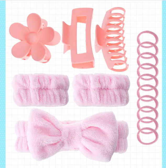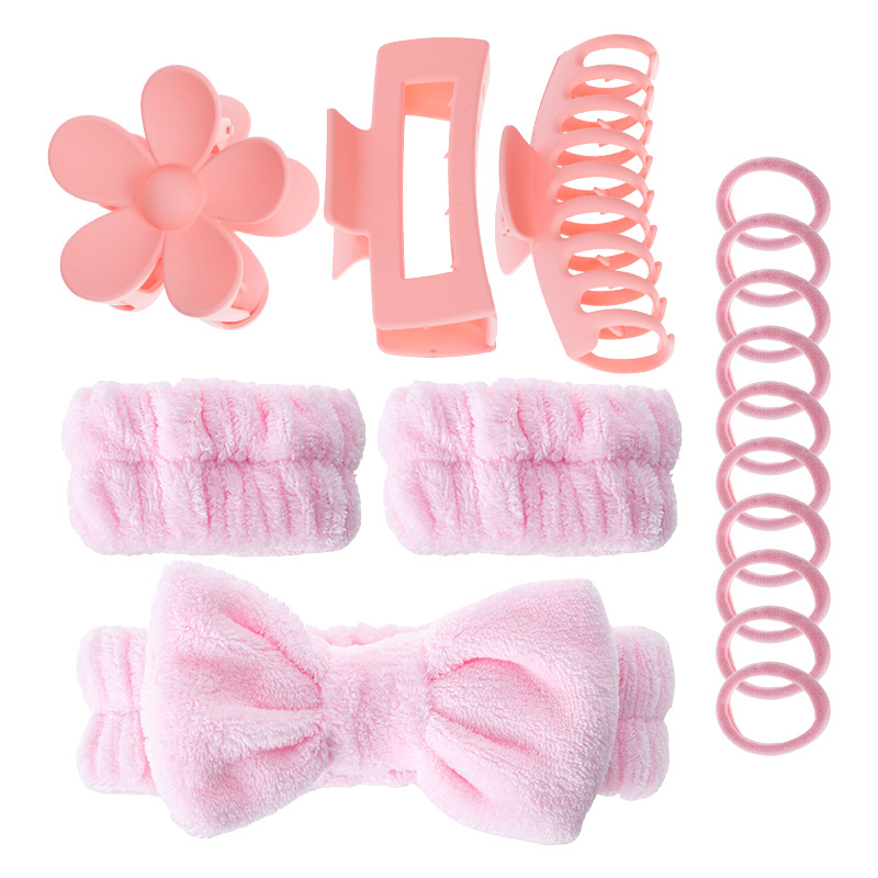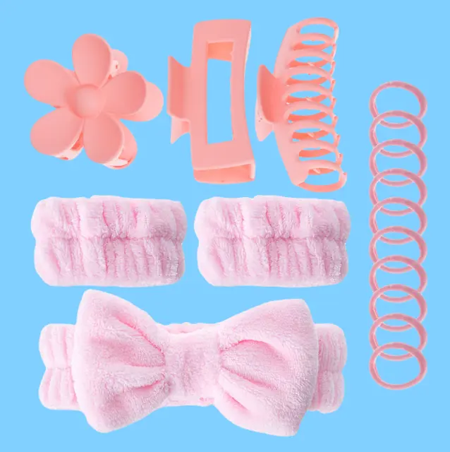 Komplet 16 mehkih trakov za lase, trak za obraz za umivanje obraza Pink