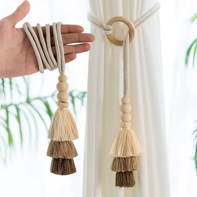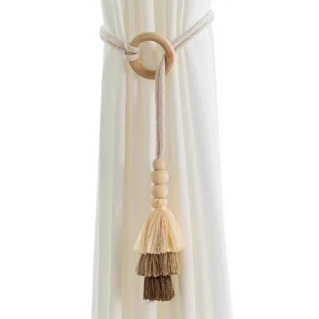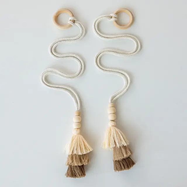 Komplet 2 Bohinjskih Lesenih Obročkov z Resicami za Zavese - Nastavljivi Držalniki