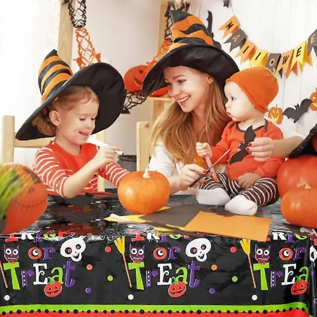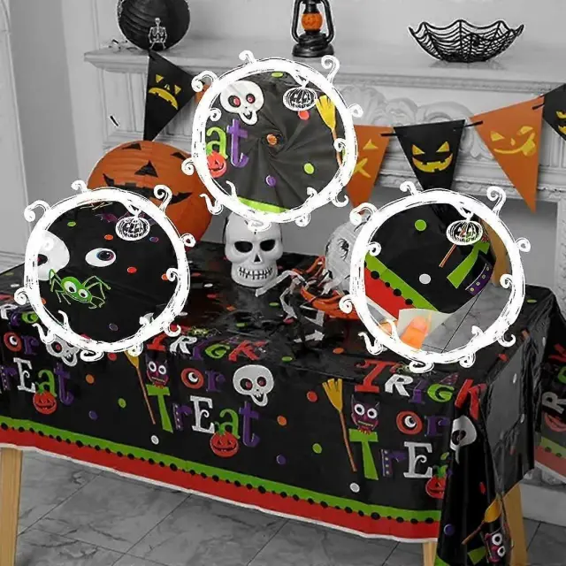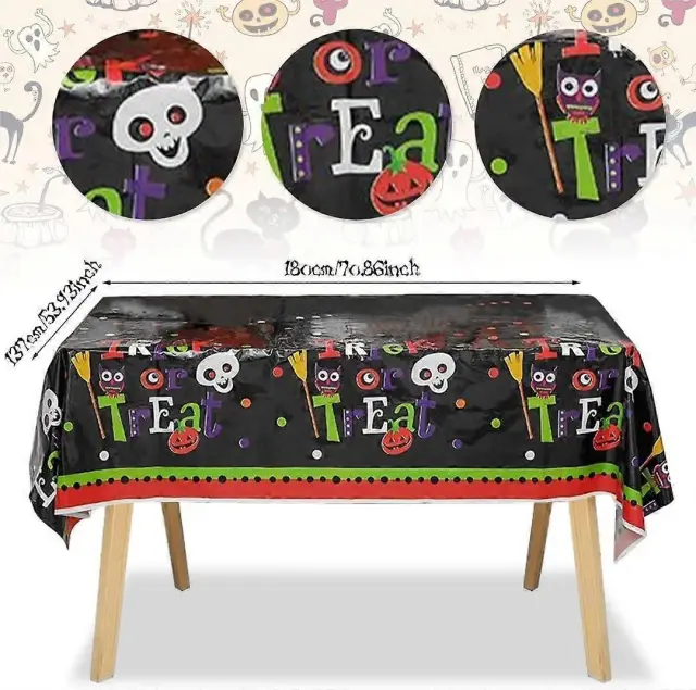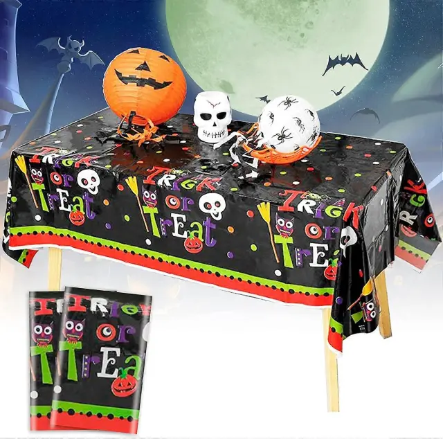 Komplet 2 črnih prtov za noč čarovnic. Zabava za noč čarovnic. Pravokotni okostnjak iz buče. Vodoodporen prt. Namizna dekoracija za noč čarovn