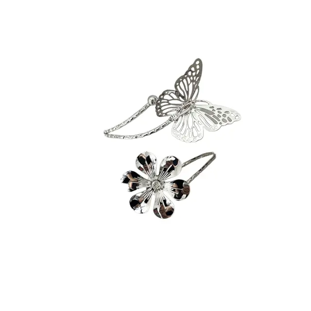 Komplet 2 kovinskih držal za zavese z metulji in cvetovi - eleganten dekor oken Silver
