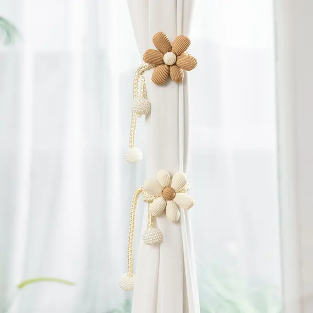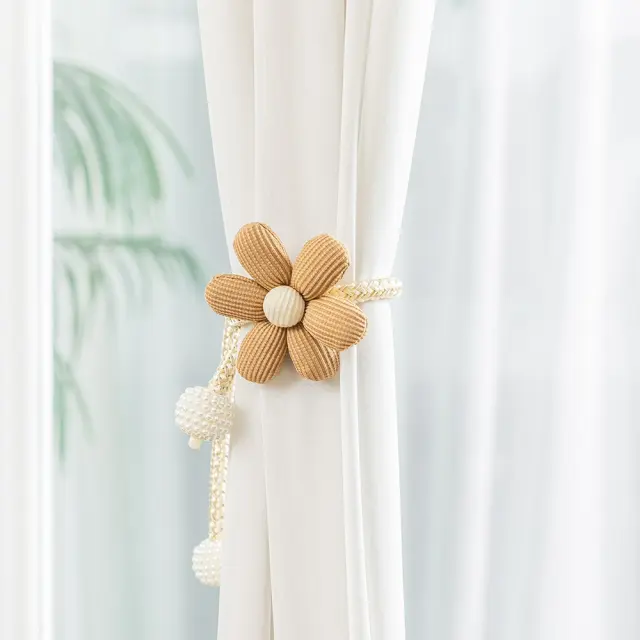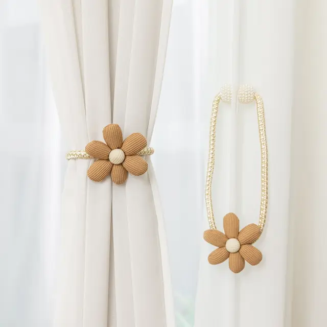 Komplet 2 okrasnih držal za zavese z rožami in biseri - okrasni dodatki coffee