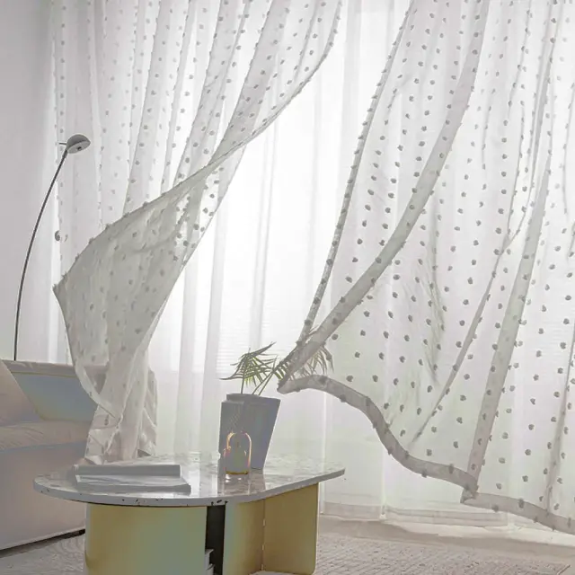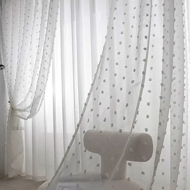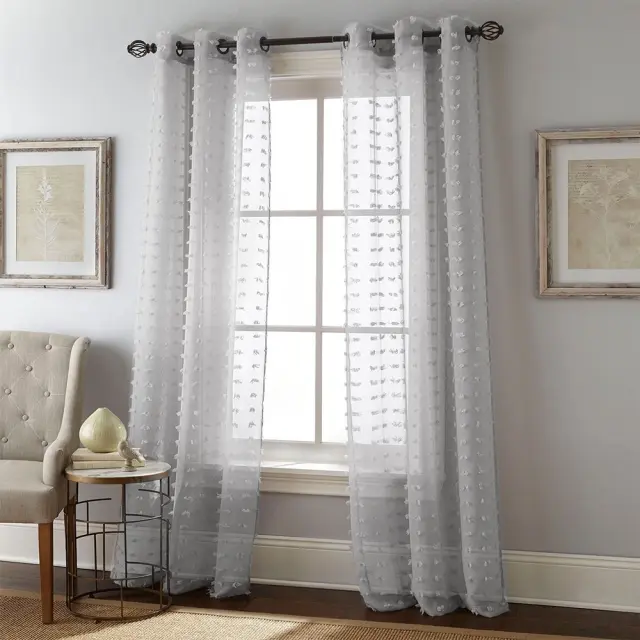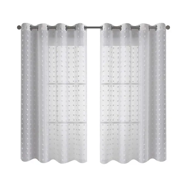 Komplet 2 prozornih zaves s pikami in pomponi - Voile okenske plošče Grey L
