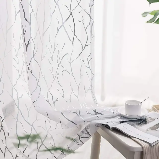 Komplet 2 zaves iz prosojnega blaga z motivom srebrnih drevesnih vej White M