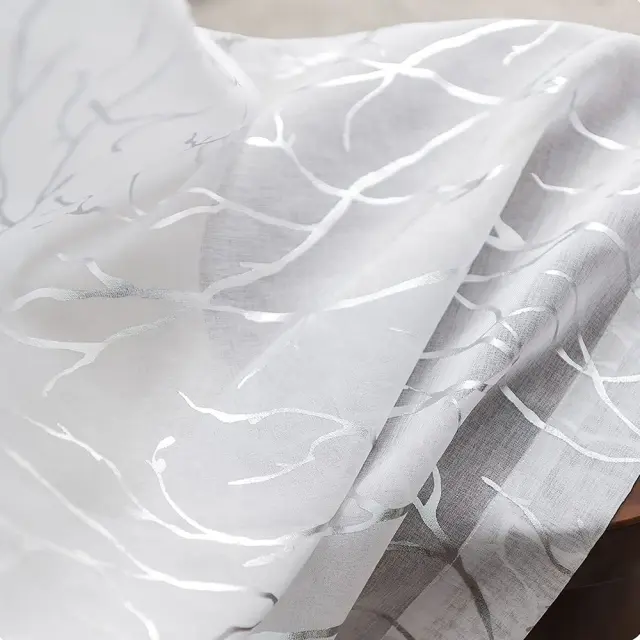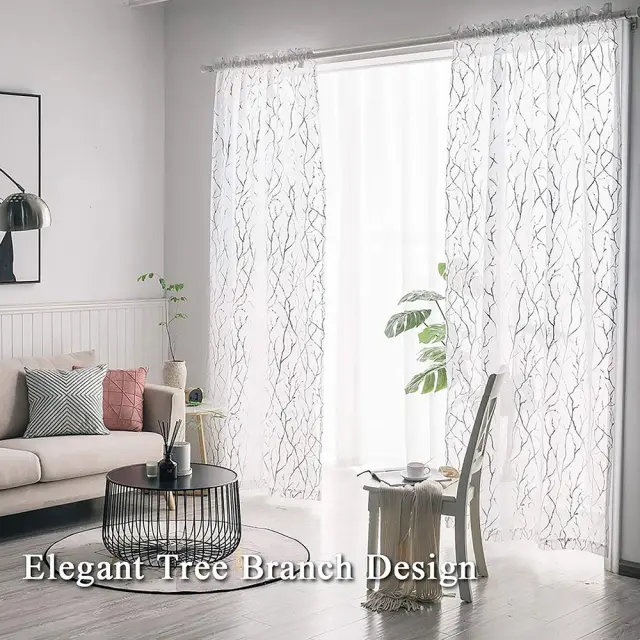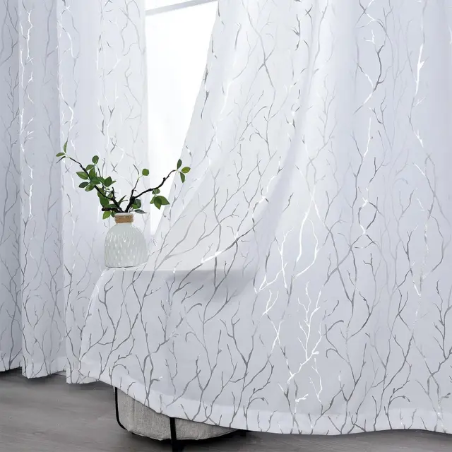 Komplet 2 zaves iz prosojnega blaga z motivom srebrnih drevesnih vej White L