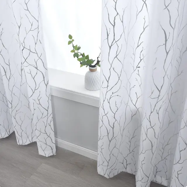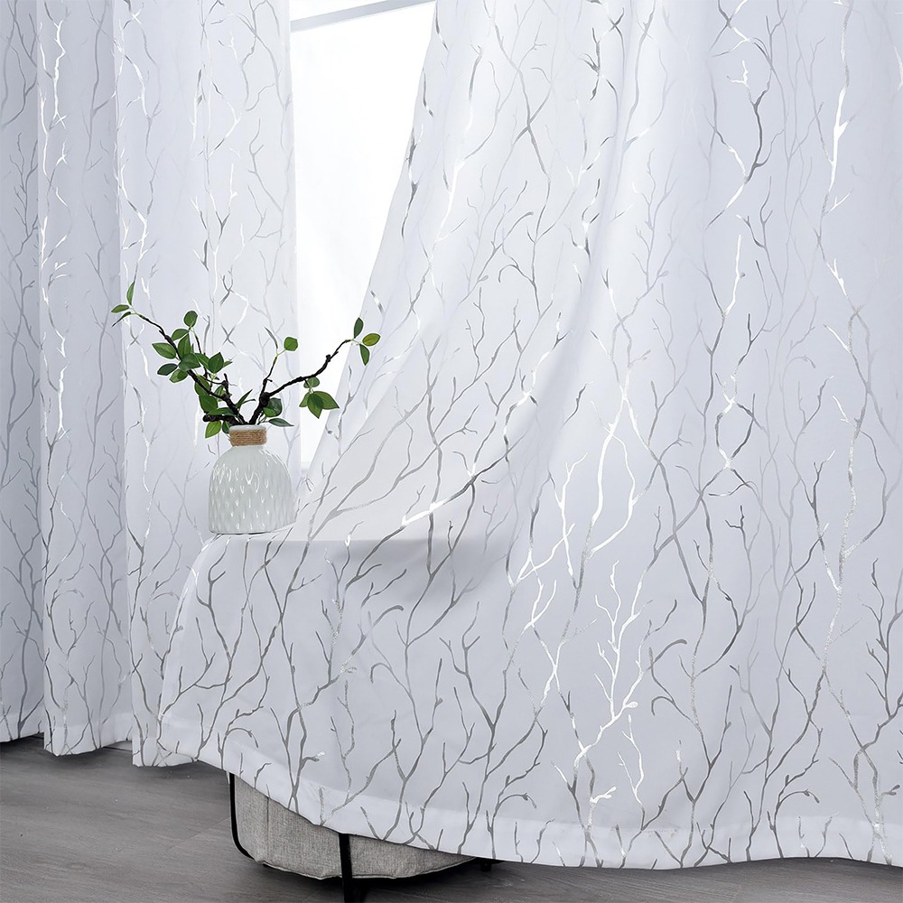 Komplet 2 zaves iz prosojnega blaga z motivom srebrnih drevesnih vej White S