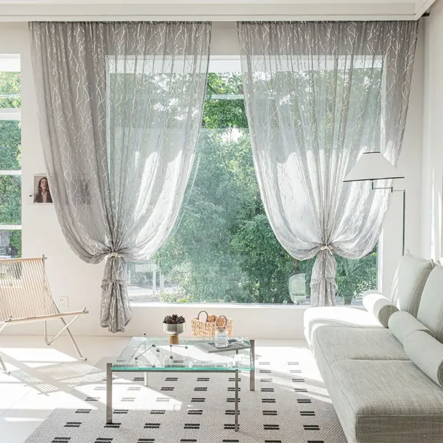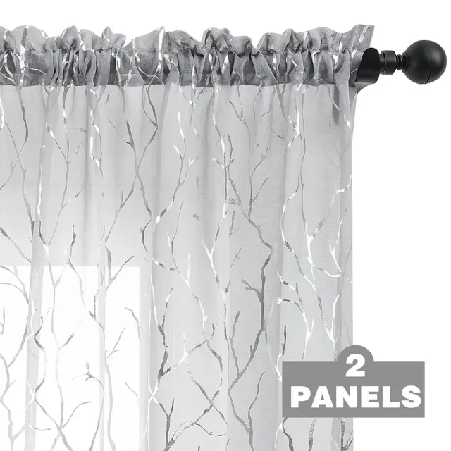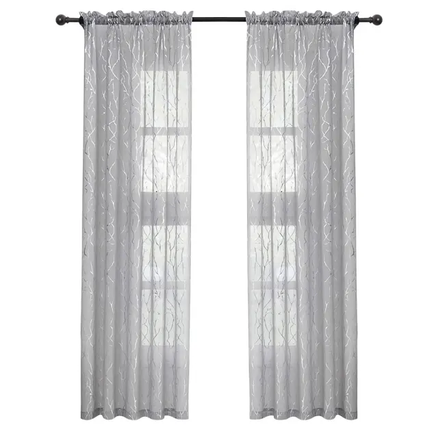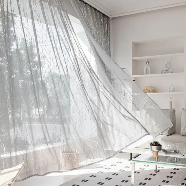 Komplet 2 zaves iz prosojnega blaga z motivom srebrnih drevesnih vej Grey S