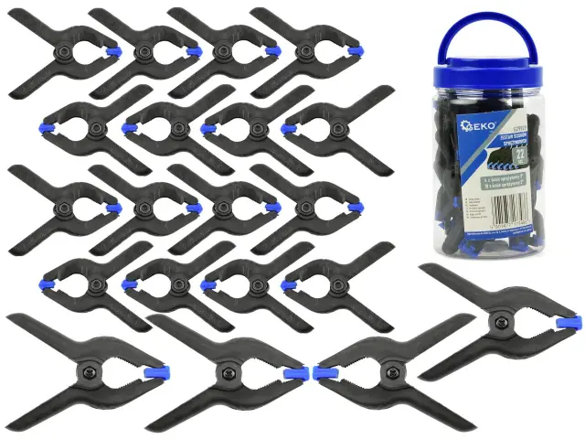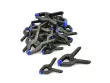 Vzmetna objemka iz trpežne plastike, opremljena z močno jekleno vzmetjo in nihajnimi čeljustmi, ki se prilagajajo pritisnjeni površini.