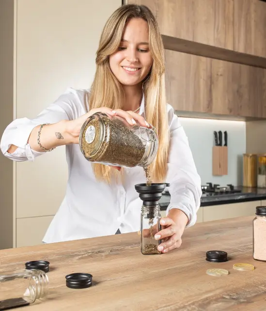 Naši kozarčki so izdelani iz visokokakovostnega stekla in ne vsebujejo BPA ali drugih škodljivih snovi. Tako bodo vaše začimbe ohranile okus in vonj ter v celoti razvile svoj potencial.