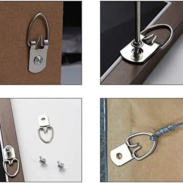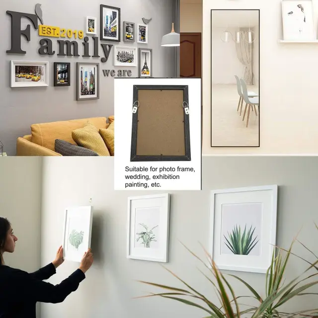 Varno in zanesljivo: Ti obešalniki za slikovne okvirje so izdelani iz visokokakovostne kovine in so zasnovani tako, da trajajo. Robustna konstrukcija zagotavlja varen oprijem in preprečuje padanje ali zdrs vaših dragocenih umetniških del ali fotografij.