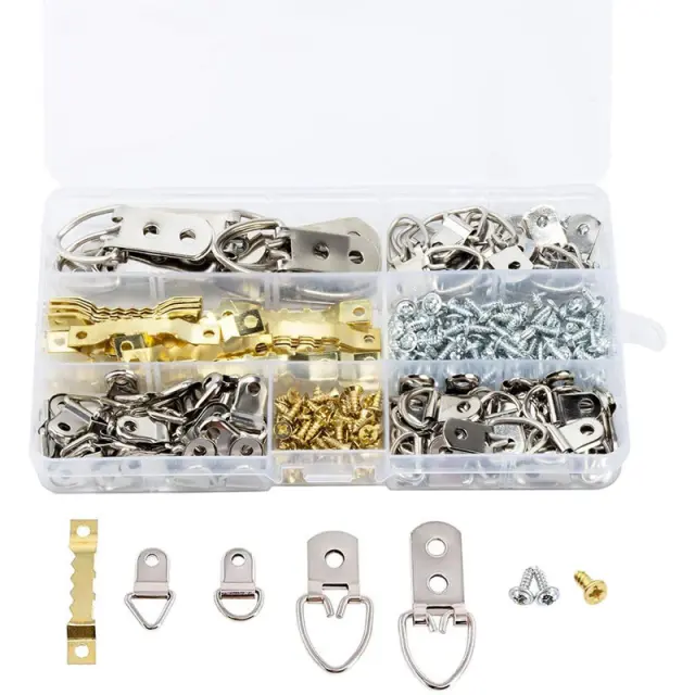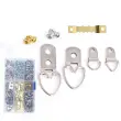 Vsestranska uporaba: Ta komplet je primeren za široko paleto obešalnih aplikacij, vključno s slikovnimi okvirji, okvirji za fotografije, platni, umetniškimi deli, ogledali in še več. Različne vrste in velikosti obešalnikov zagotavljajo prilagodljivost za različne teže in sloge obešanja.