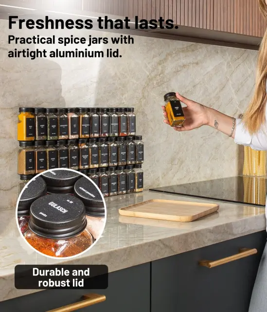Naši kozarčki so izdelani iz visokokakovostnega stekla in ne vsebujejo BPA ali drugih škodljivih snovi. Tako bodo vaše začimbe ohranile okus in vonj ter v celoti razvile svoj potencial.
