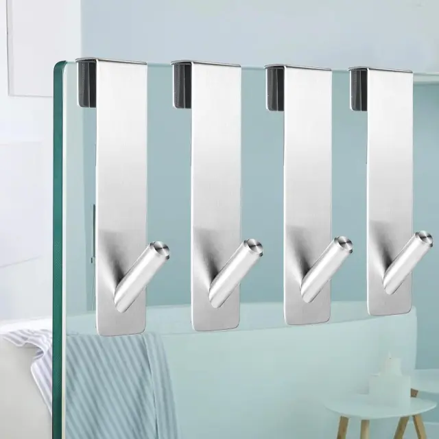 Komplet 4 kopalniških obešalnikov za vrata tuša iz nerjavečega jekla Silver