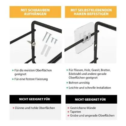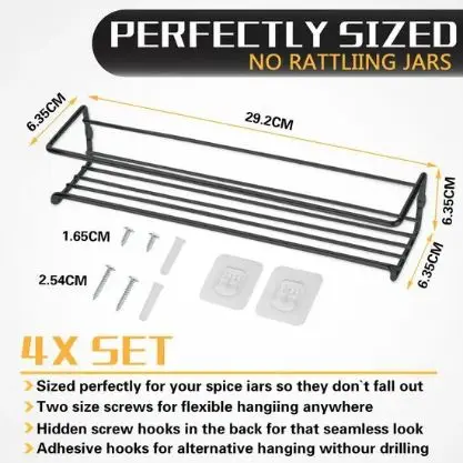 ✅ ENOSTAVNA MONTAŽA – Za namestitev teh kovinskih stojal za začimbe lahko uporabite priložene vložke in vijake ali pa police preprosto pritrdite s priloženimi lepilnimi blazinicami. Izbira je vaša!