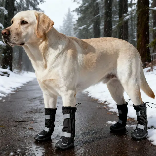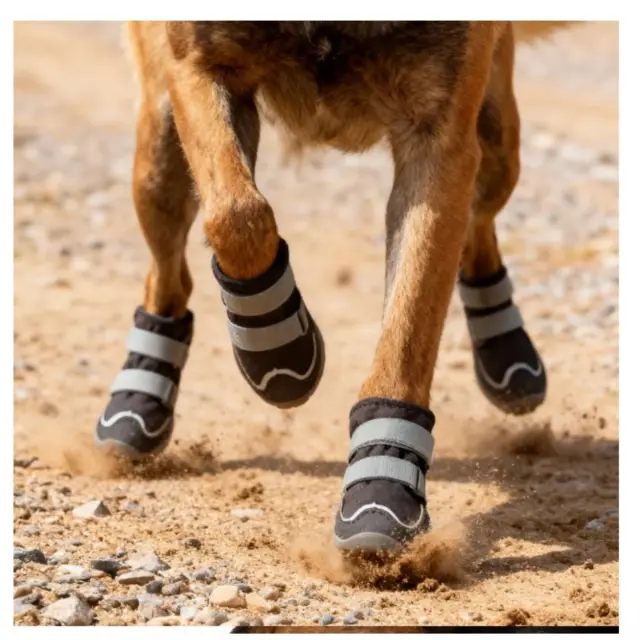 Udobje in toplota: Ti pasji čevlji so izdelani iz mešanice poliestra in PVC-ja ter nudijo izjemno udobje in toploto. Mehka notranja podloga nežno oblazini tačke vašega ljubljenčka, preprečuje odrgnine in draženje, izolirana zasnova pa ohranja njihove noge tople v hladnih vremenskih razmerah. Popolni za zimske sprehode, ti čevlji zagotavljajo, da tačke vašega psa ostanejo prijetne in zaščitene pred vremenskimi vplivi. Kombinacija udobja in toplote naredi te čevlje idealno izbiro za nošenje v vseh letnih časih, kar ohranja vašega kosmatinca srečnega in zadovoljnega.