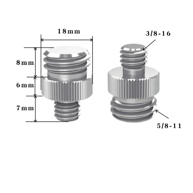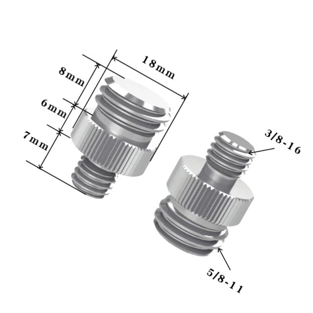 Komplet 5 adapterjev za stojalo: adapter z navojem 1/4-20 palcev na 5/8-11 palcev Silver 3/8-16