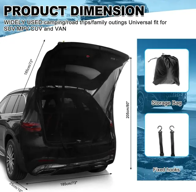 Enostavna namestitev in uporaba: Prosimo, upoštevajte: to niso originalni deli. Mreže so zasnovane za hitro in enostavno namestitev. S pomočjo magnetnega pritrjevanja se preprosto pritrdijo na okvir vrat in zadnji prtljažnik vašega avtomobila. Ko jih ne potrebujete, jih lahko hitro odstranite in shranite, kar omogoča priročno uporabo kadarkoli in kjerkoli.