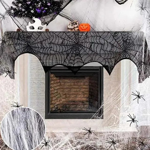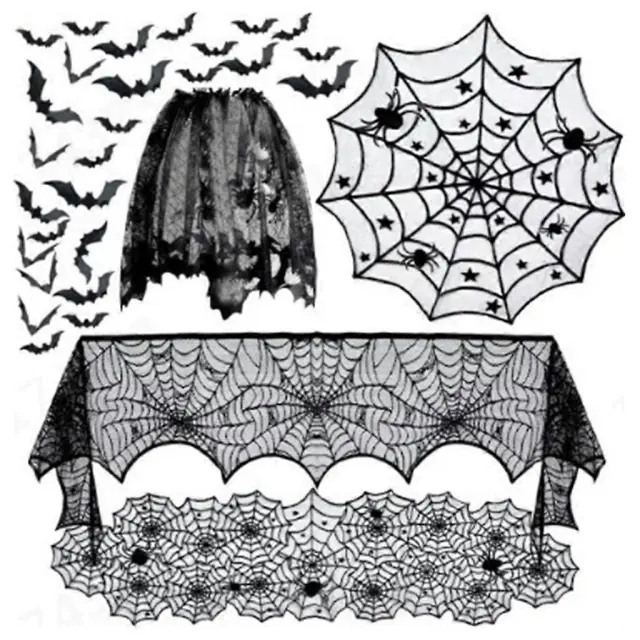 Komplet 5 okraskov za noč čarovnic, pajek, pajčevina, namizni prt, tekač, kamin, kamin, šal, senčnik s 36 kosi dekoracije netopirjev