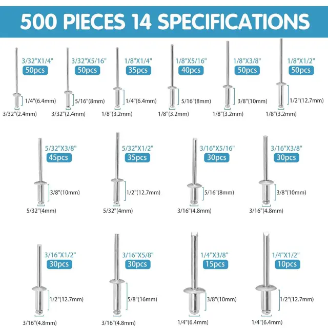 Komplet 500 kosov aluminijastih slepih kovic - Komplet srebrnih pop kovic