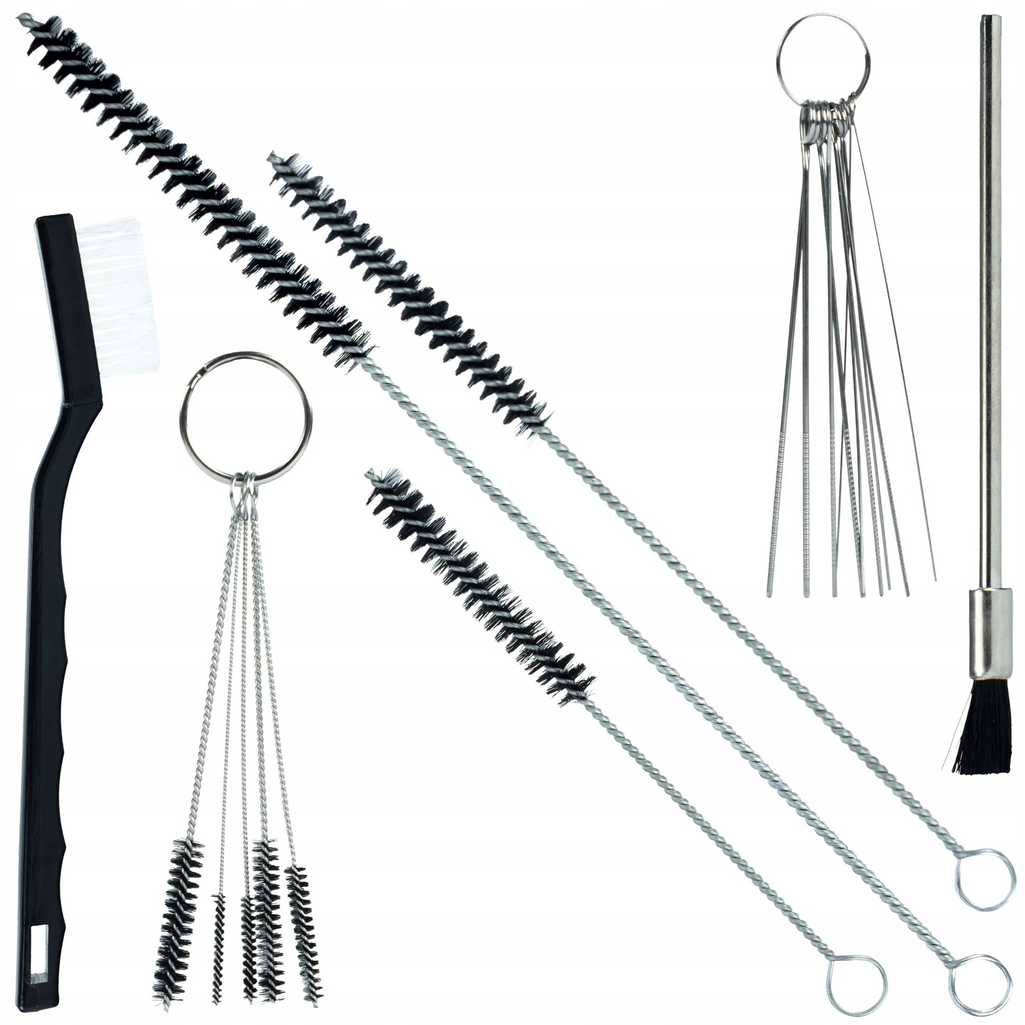 Različne ščetke in krtače za čiščenje šob, cevi in filtrirnih elementov.