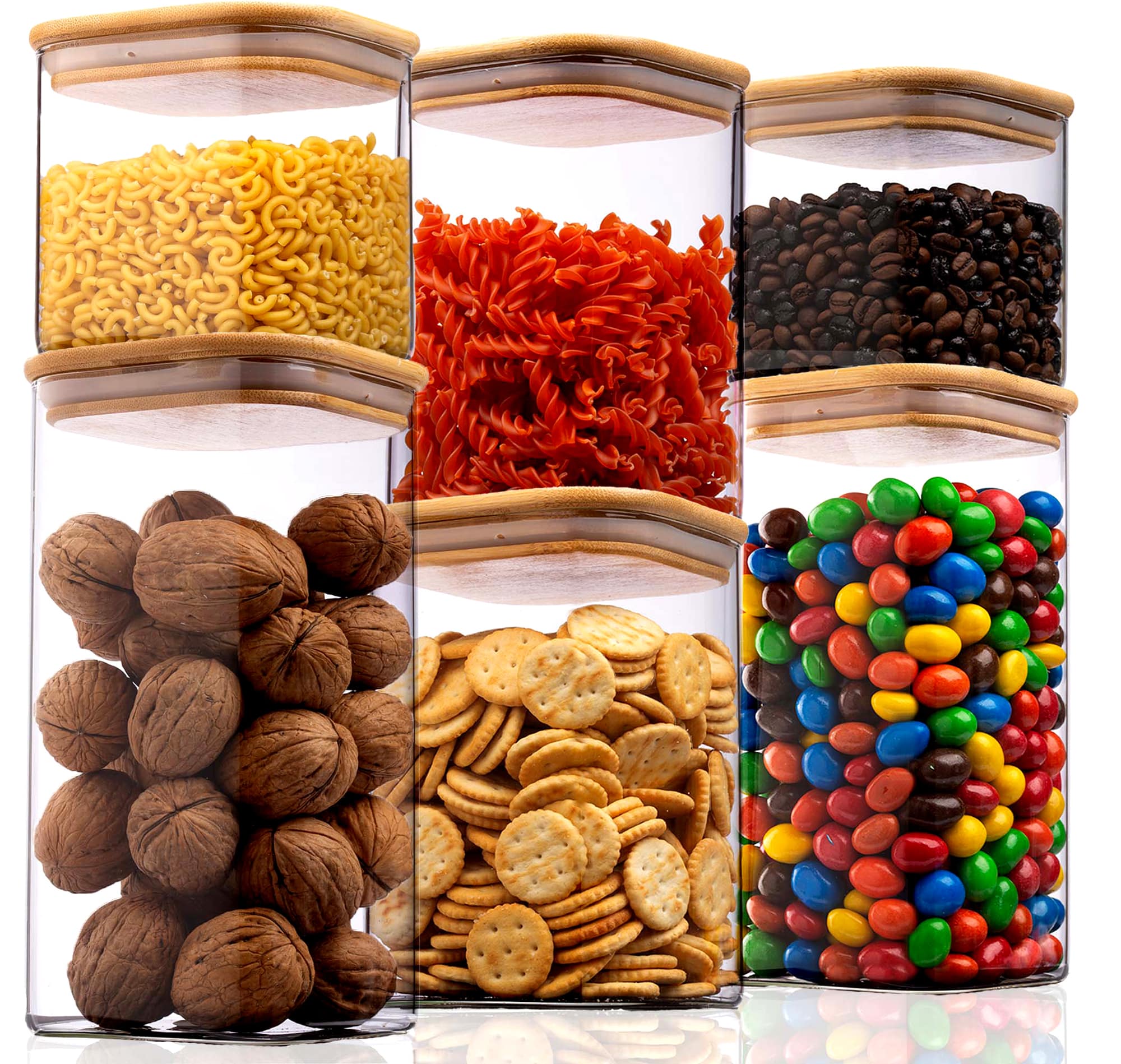 Z našimi praktičnimi kozarci z bambusovim pokrovom bo vaša kuhinja vedno urejena. Ne glede na to, ali boste kozarce hranili na kuhinjskem pultu, v kredenci, shrambi ali omari, boste takoj našli, kar potrebujete!