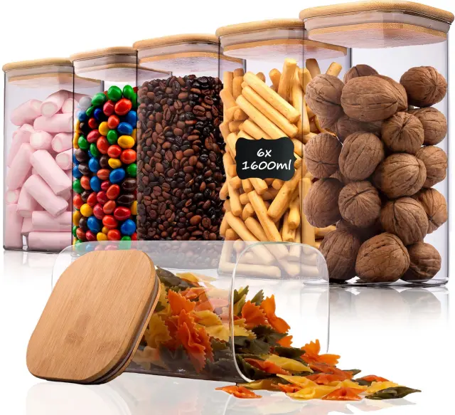Z našimi praktičnimi kozarci z bambusovim pokrovom bo vaša kuhinja vedno urejena. Ne glede na to, ali boste kozarce hranili na kuhinjskem pultu, v kredenci, shrambi ali omari, boste takoj našli, kar potrebujete!