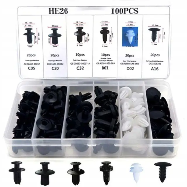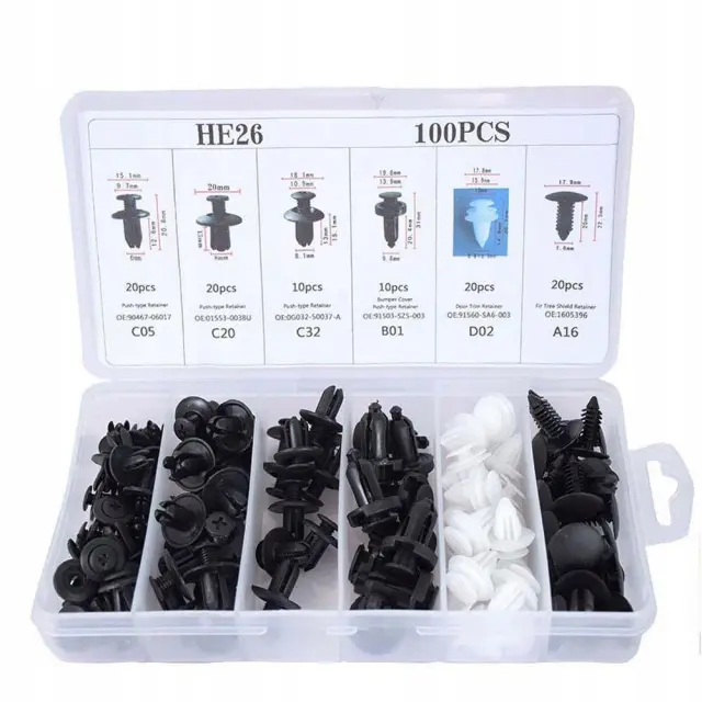 Rosfix Set Avtomobilskih Zatičev 620 Kos – Za Tapetništvo, Odbijače, Vrata | Trpežna Plastika, Črn/Bel