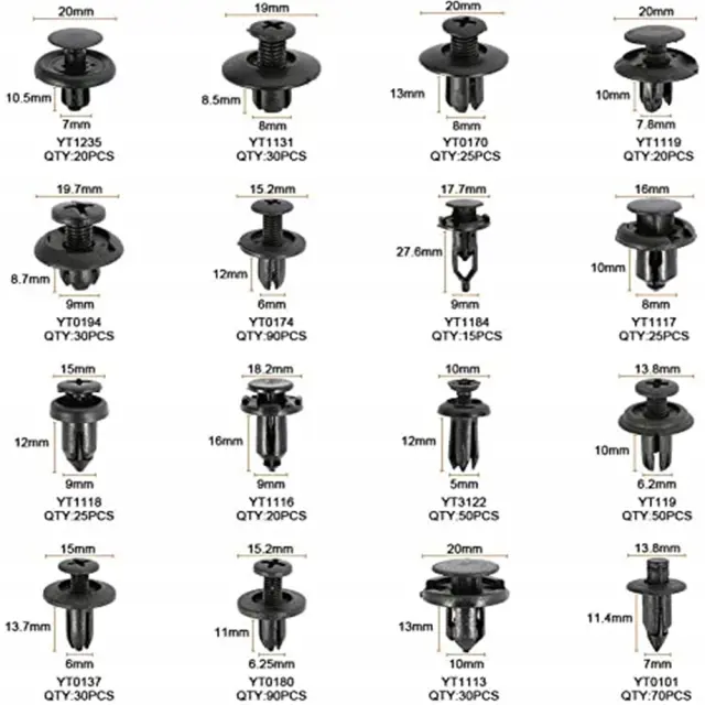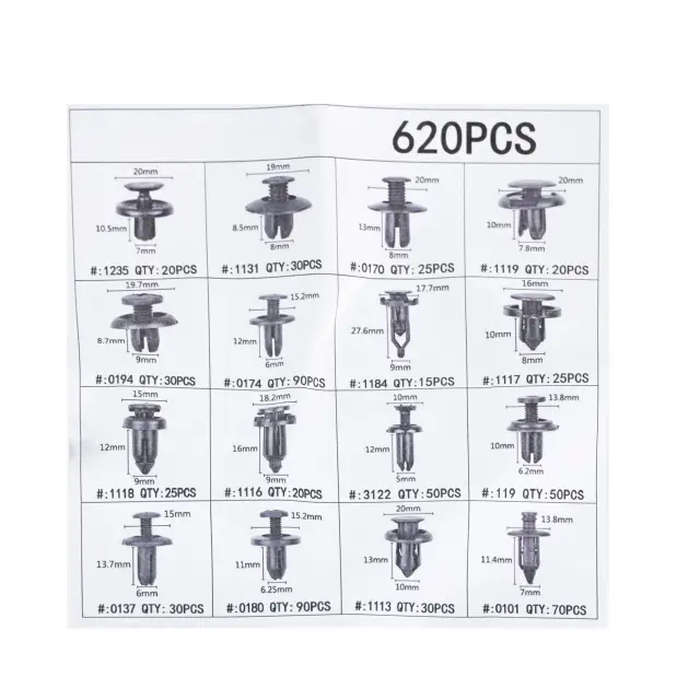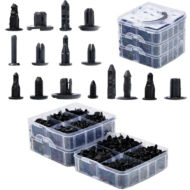Rosfix Set Avtomobilskih Sponk – 620 Kos v Plastični Škatli | Najlonski Vijaki, 16 Velikosti, Črn