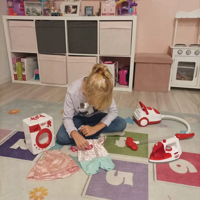 - 3 v 1 – celoten čistilni set vključuje 3 gospodinjske aparate: pralni stroj, likalnik in sesalnik. Komplet 3 v 1 je odlična igrača za vsakega otroka, ki pri vsakodnevnih opravilih rad posnema svoje starše, zaradi množice realističnih funkcij pa se ga ne more dolgočasiti.