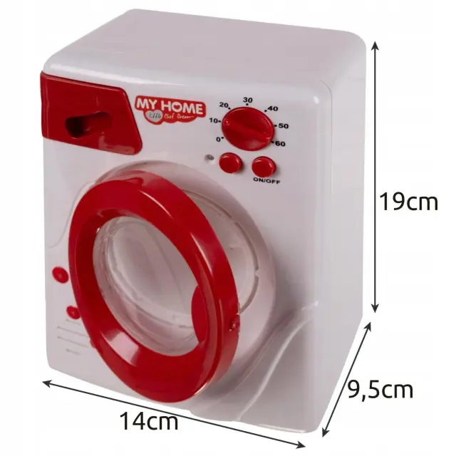- SPECIFIKACIJA – barva: bela, rdeča material: plastika napajanje: AA baterije (niso priložene) mere pralnega stroja: 14 x 19 x 9,5 cm mere v paketu: 55 x 38 x 12 cm teža: 0,816 kg teža paketa: 1,577 kg.