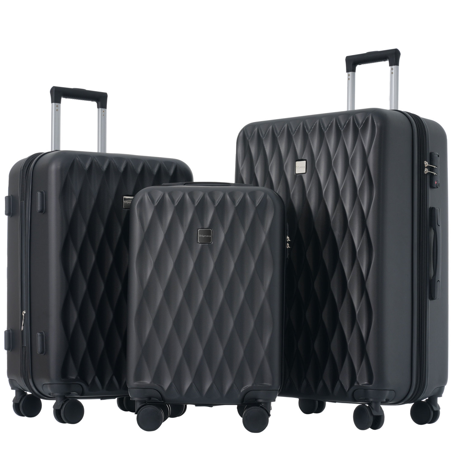 Komplet črnih kovčkov iz trde ABS plastike (ML-XL) s ključavnico TSA in 4 kolesi