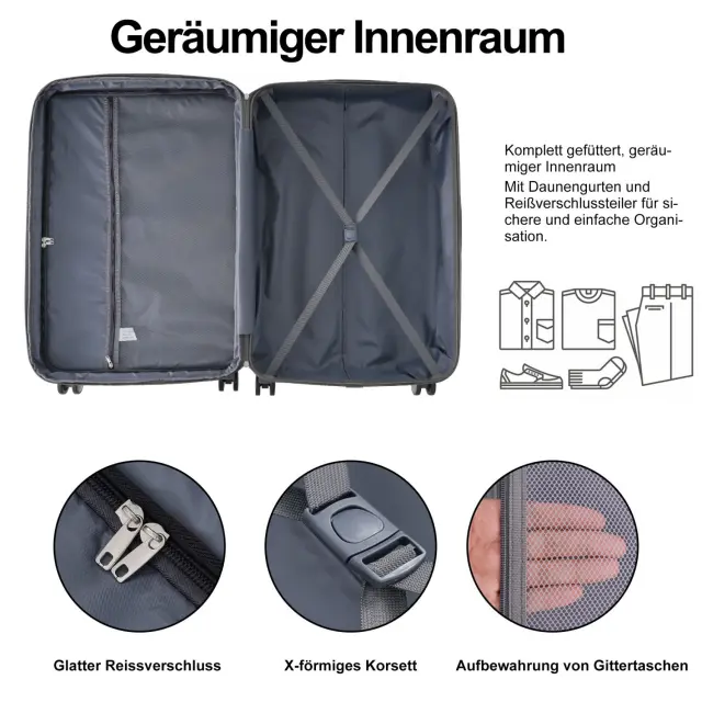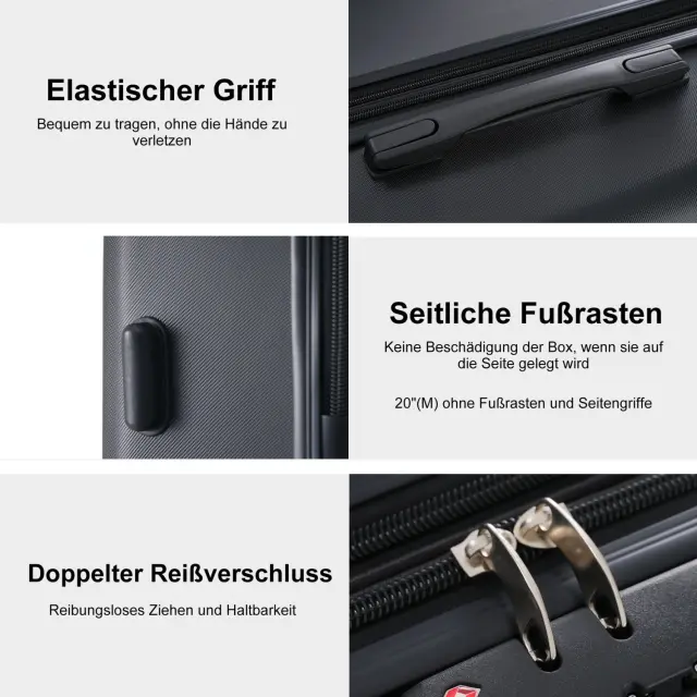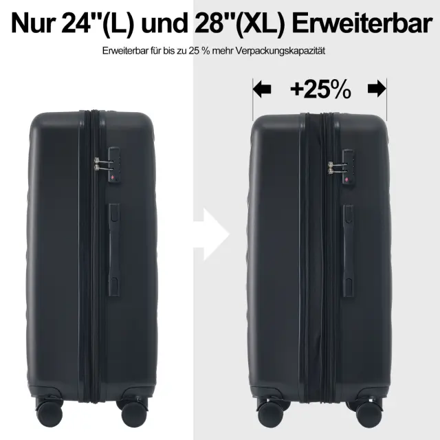 Komplet črnih kovčkov iz trde ABS plastike (ML-XL) s ključavnico TSA in 4 kolesi