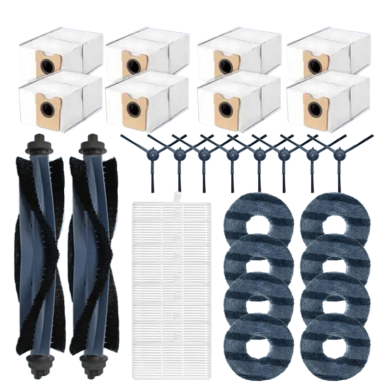 Komplet za popolno čiščenje: Ta obsežen komplet opremi vaš Eufy Omni C20 z vsem, kar potrebuje za temeljito čiščenje, od nadomestnih ščetk in filtrov do vrečk za prah in krp za brisanje.