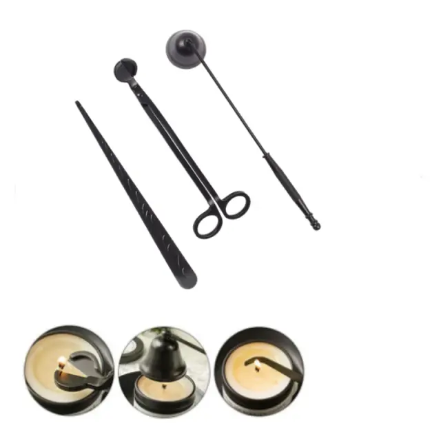 Paket vsebuje prirezovalnik stenja za sveče, dušilec za sveče, potop za stenj za sveče. Naj sveče gorijo dlje, čistejše in varnejše brez pretiranega dima, brizganja voska in poškodb stenja.