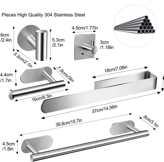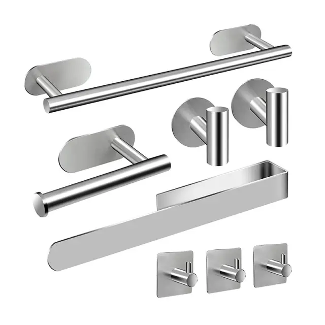 Celovita rešitev za kopalnico: Ta obsežen 8-delni komplet vključuje večino predmetov, ki jih potrebujete za opremljanje kopalnice, vključno z držalom za brisače, držalom za toaletni papir, kavljem za kopalni plašč in še več.