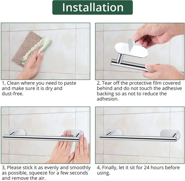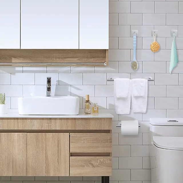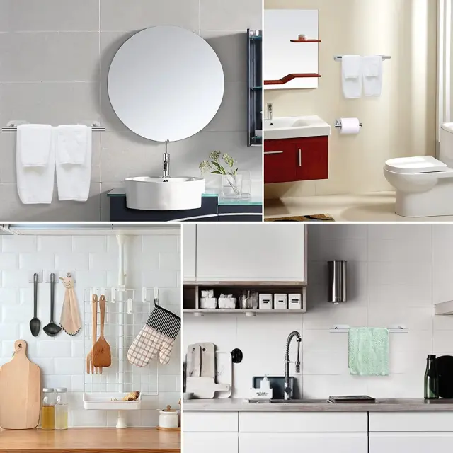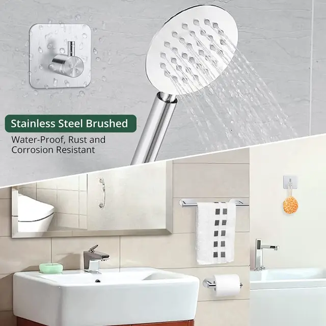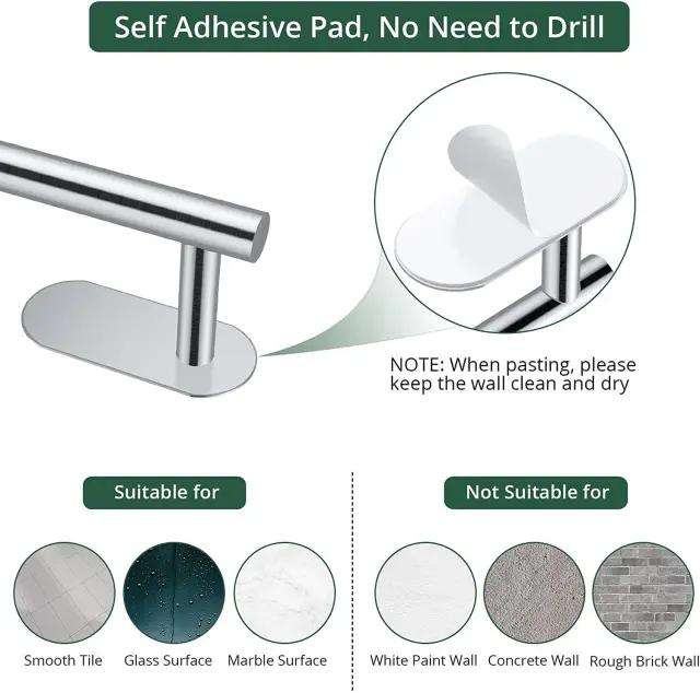 Odporno proti rji in dolgotrajno: Ta komplet držala za brisače je izdelan iz visokokakovostnega nerjavečega jekla in se ponaša z izjemno odpornostjo proti rji in koroziji, kar zagotavlja dolgo življenjsko dobo v vlažnih kopalniških okoljih.
