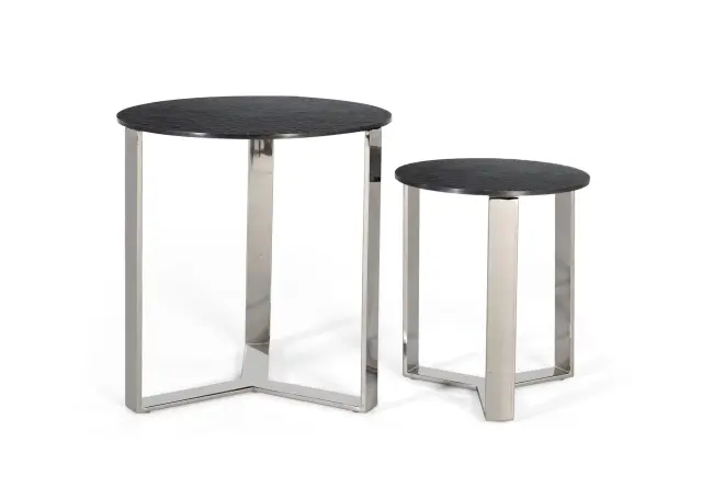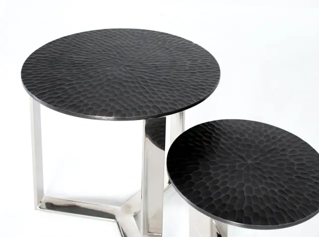 Komplet dveh ročno izdelanih kovinskih klubskih mizic