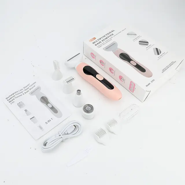 Vsestranski lepotilni set: Ta komplet 5 v 1 vsebuje vse, kar potrebujete za popolno nego telesa. Priloženi so mu nastavki za britje, prirezovanje in oblikovanje, zaradi česar je popoln za uporabo na nogah, pod pazduhami, obrveh in dlakah na obrazu.