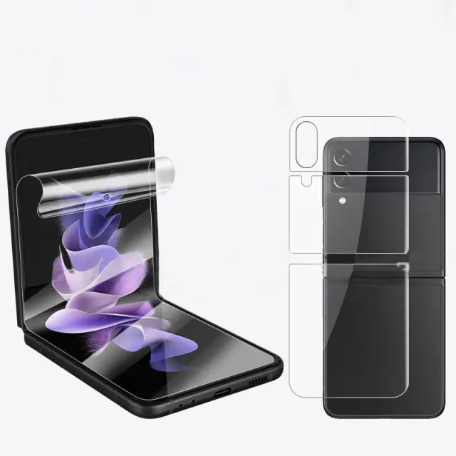 Lastnosti samozdravljenja: Hidrogelni material je zasnovan s sposobnostmi samozdravljenja, kar omogoča, da manjše praske in madeži sčasoma izginejo, s čimer ohranjate zaslon videti nedotaknjen. Ta napredna tehnologija zagotavlja dolgotrajno jasnost in zaščito, ohranjajoč prvotni videz zaslona vašega Samsunga Z Flip3. Uživajte v gladki uporabi brez mehurčkov in kristalno čisti izkušnji gledanja s to inovativno folijo.