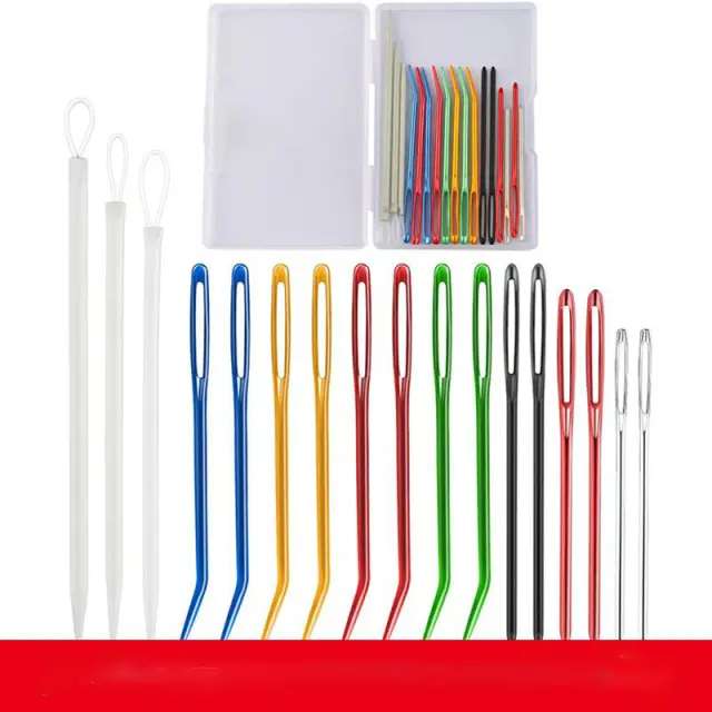 Vsestranski izbor igel: Ta obsežen komplet vključuje različne igle za vse vrste pletenja ali šivanja. Od topih igel za tapiserije za tkanje koncev do ukrivljenih igel za enostavno manipulacijo s prejo, imeli boste popolno orodje za vsak šiv.