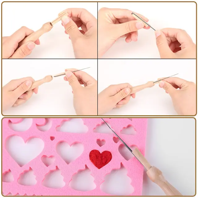 Udobno in varno: Igle za polstenje so zasnovane za udobje in varnost. Igle so gladke in brez robov, kar zagotavlja prijetno izkušnjo polstenja. Priloženi ščitniki za prste ščitijo vaše prste pred nenamernimi vboda med delom.