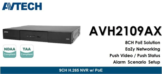 Komplet kamer 1x AVTECH NVR AVH1109, 2x 2MPX IP Bullet kamera AVTECH DGM2103ASVP in 2x 2MPX IP Dome kamera AVTECH DGM2203ASVSEP + 4x UTP kabel 1x RJ45